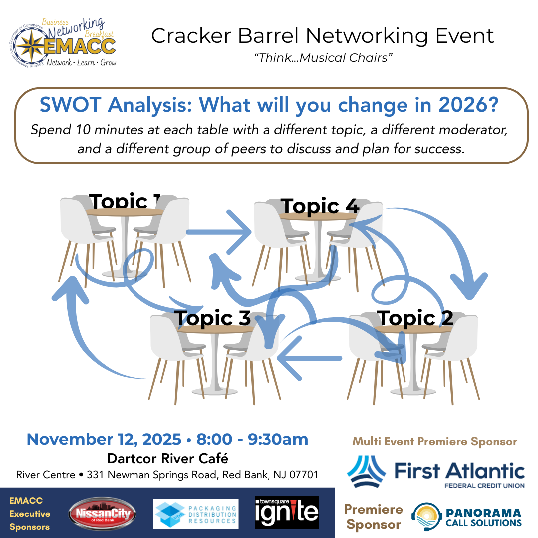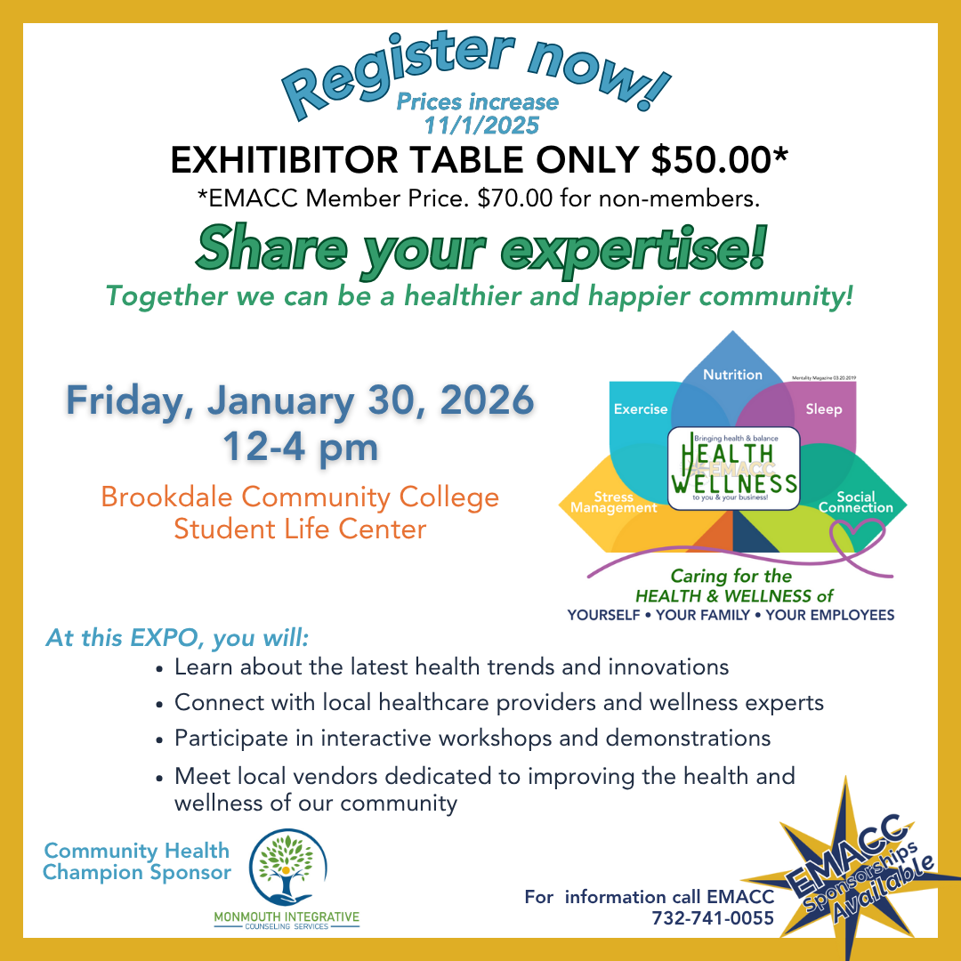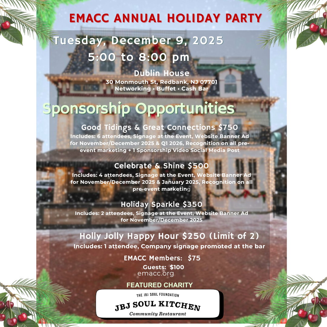 EMACC works to help your business grow with new business connections, networking opportunities and valuable resources. Our membership includes more than 300+ area businesses and industries in Monmouth County and beyond. Let’s grow together!