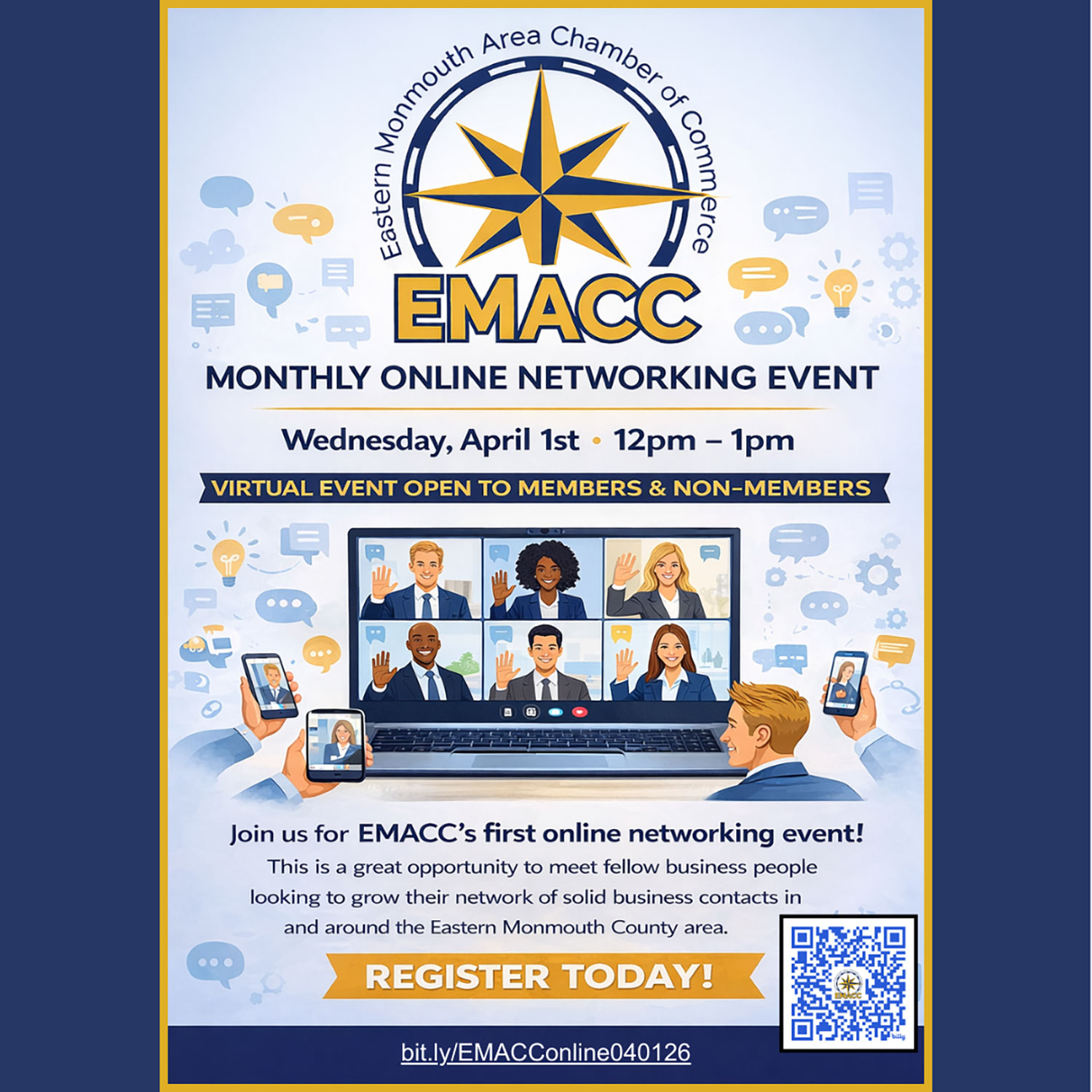 Founded in 1928, the Eastern Monmouth Chamber of Commerce (EMACC) has supported our business and community in many ups and downs for nearly 100 years. EMACC plays an essential role in the health of the business community regionally and statewide. Our mission is to be a leading resource to strengthen member businesses and enrich the communities we serve. All are welcome!